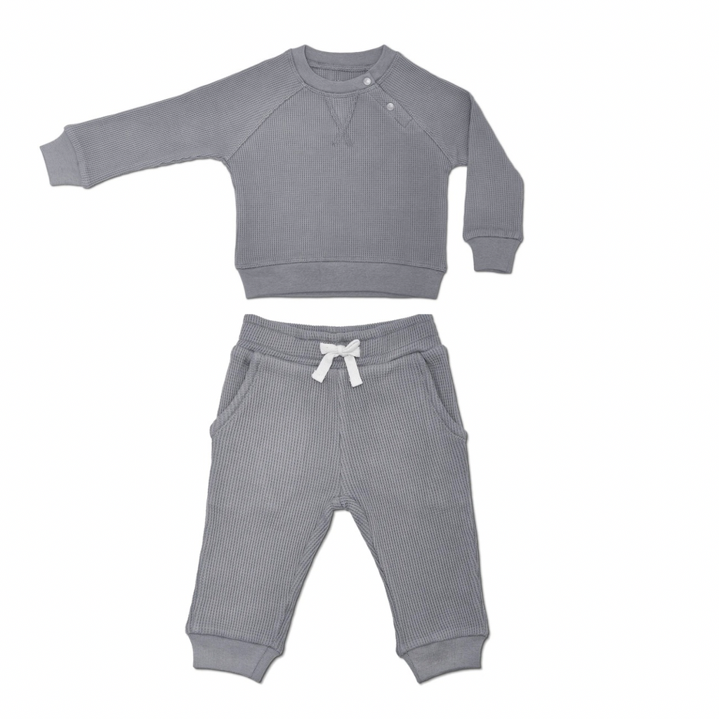 The top has a relaxed fit with easy snap for over the head, while the matching bottoms come with a soft elastic waistband for a snug yet flexible fit. Thoughtfully designed for play, rest, and everything in between, this set is a must-have for your baby’s wardrobe.